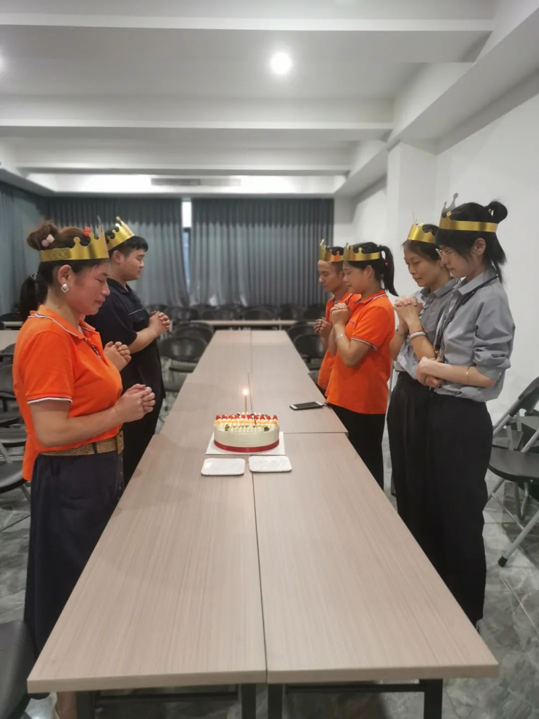 公司為過生日的伙伴們準備了蛋糕。來,點上蠟燭,我們閉上眼,一起來許一個愿望吧!