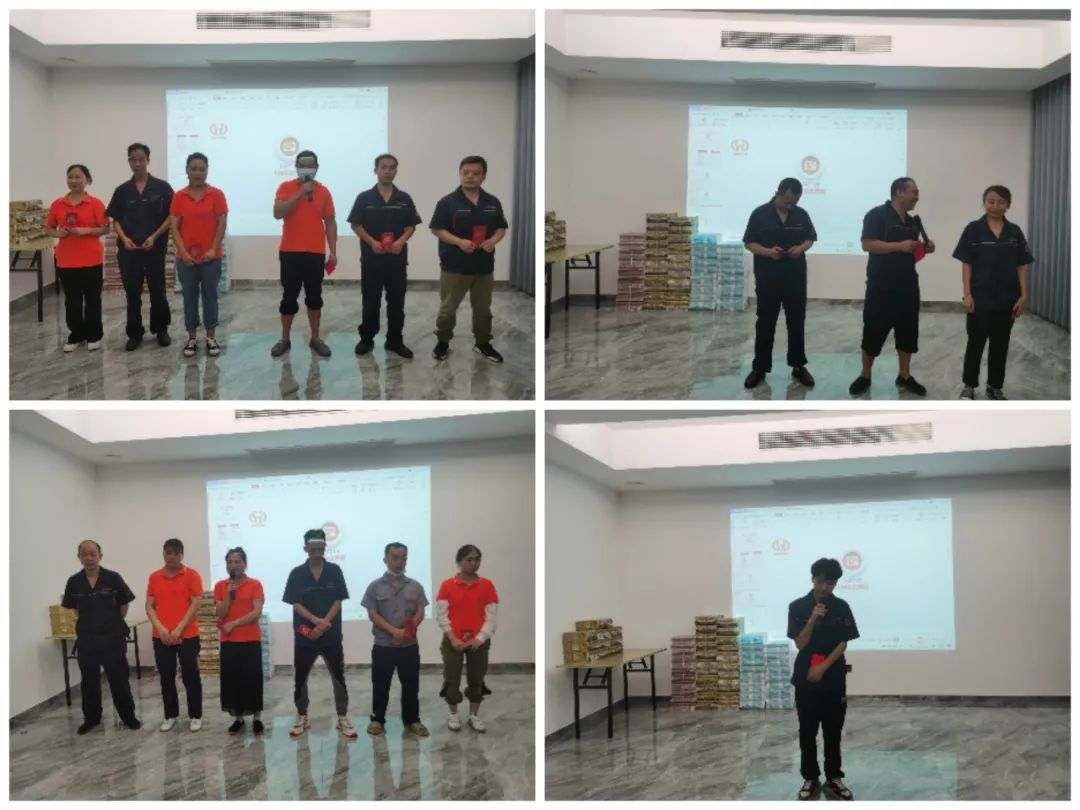 6月是收獲的季節,在公司全體員工辛勤地付出及努力下,6月份銷售額同比增長了40%!拼搏的是汗水,付出的是努力,收獲的是喜悅!公司一共有九個小組,按工分績效的排名首先確定了小組名次以及小組內的名次和獎金。員工按名次依次上臺從組長那里領取了屬于自己的那份紅包榮譽,并合影留念!
